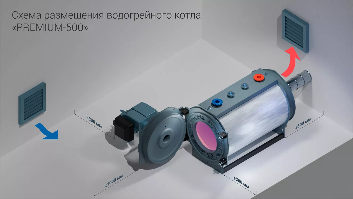 Котлы PREMIUM С данной модификации производятся в диапазоне номинальной мощности от 250 кВт до 6 МВт. По желанию заказчика котлы комплектуются горелкой, системой автоматического управления (термостатическая, шкаф управления водогрейным котлом PREMIUM, каскадный шкаф управления PREMIUM).