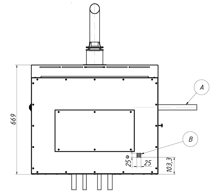 габаритные размеры вид снизу ТГУ-НОРД-С котел наружного размещениягабаритные размеры вид сзади ТГУ-НОРД-С котел наружного размещения