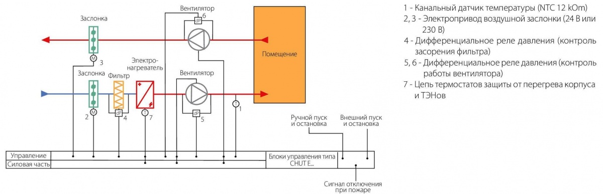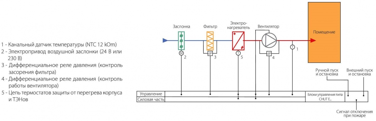 • Подключение электрических воздухонагревателей суммарной мощностью до 22 кВт;